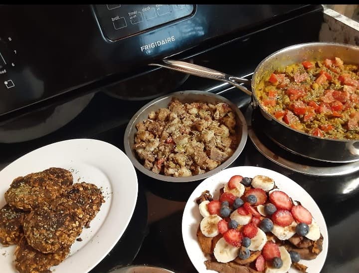 One way I continue to Hold Space for my Healing is by Eating for my L1fe w/ SOFAS FREE WFPE…Pic is of a SOFAS Free (Salt Oil Flour Alcohol Sugar Free) WFPE (Whole Food Plant Exclusive) brunch I’m excited to fix from time to time, even when I’m Traveling. Menu includes Roasted Potatoes, Mushroom Breakfast Patties, Sweet Potato French Toast, & Chickpea Scramble. All exact recipes I use, & adjustments I make, can be found in my Ebook here: https://form.jotform.com/203204987055153. Get your Free “5 Tips That Have Helped Me in Eating SOFAS Free Whole Food Plant Exclusive” link here: https://eatingformyl1fe.wordpress.com/stay-in-touch/ Here’s to our health, Divine Self-Care & Freedom